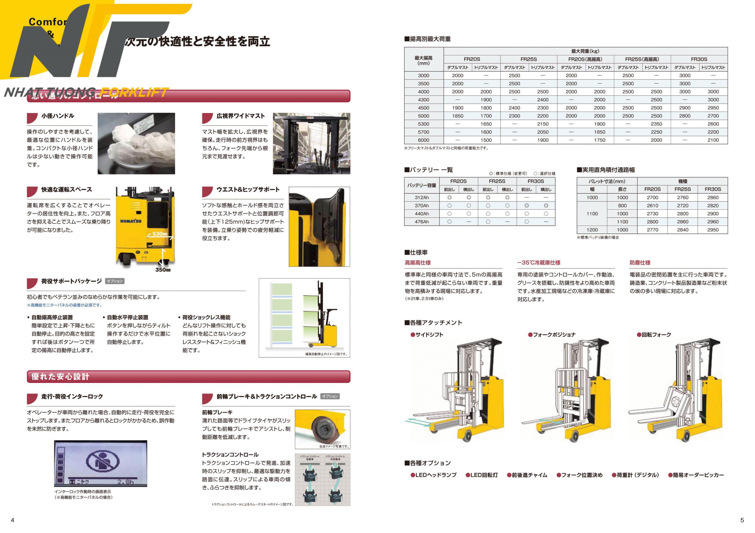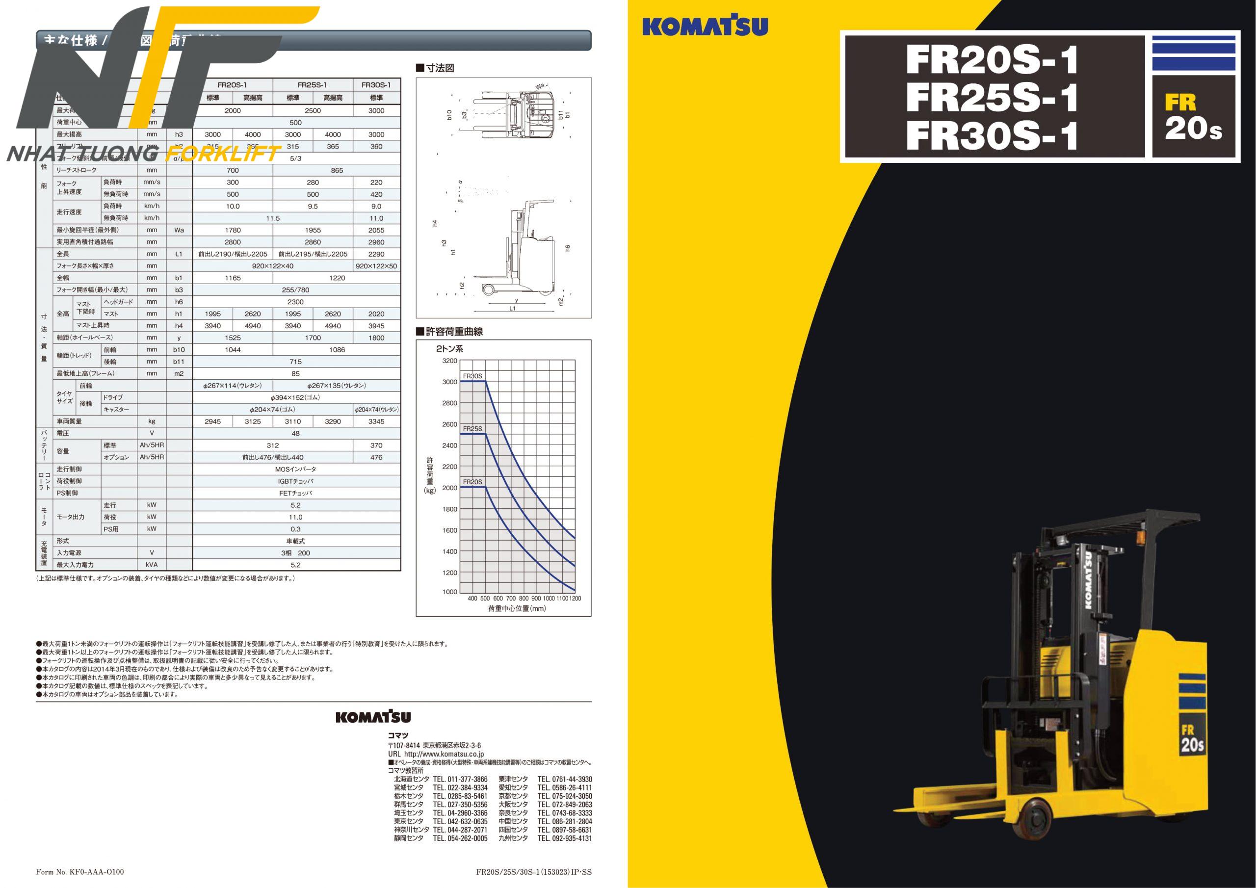 Thông số kỹ thuật xe nâng điện đứng lái 2,5 tấn Komatsu FR25S-1-NT01
